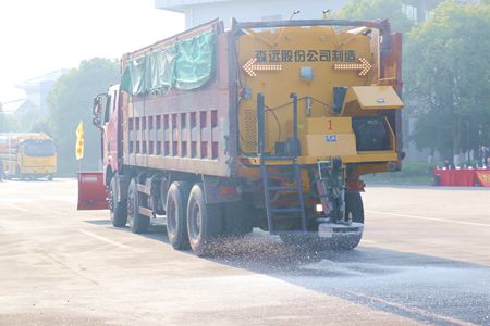 演練活動(dòng)在高速管理公司所轄杭浦高速管理處開展,20多名演練人員,1臺渦噴6吹雪車、2臺撒鹽機(jī)、2臺雪鏟車、多臺路巡車嚴(yán)陣以待,積極投入到演練活動(dòng)中來。隨著演練總指揮一聲令下,渦噴6吹雪車轟轟隆隆啟動(dòng)了,大噴頭里一股熱浪急速涌出。“這輛吹雪車是公司1月份新引進(jìn)除雪設(shè)備,它擁有航空軸流式渦噴6發(fā)動(dòng)機(jī),最大吹雪速度≥20km/h,一次除雪寬度≥30m,功率大,風(fēng)力強(qiáng)、除雪效力高,能有效地清除車體兩側(cè)積雪和浮冰,是嘉興境內(nèi)首臺吹雪車,是冬季高速公路除雪保暢工作的終極利器”杭浦管理處主任周劍介紹道,“是我們冬季抗冰除雪的‘新底牌’和主力軍。”